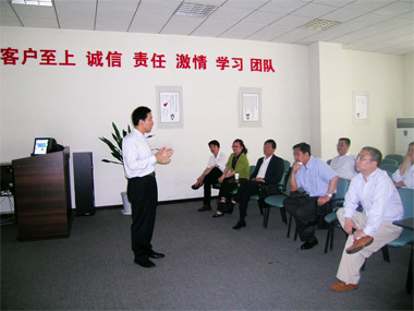 王忠林副市長一行受到公司總經理王鵬的熱情迎接,在公司培訓大廳,王總就網站建設、網絡營銷及電子商務一站式服務等業務情況向領導們進行了匯報。在匯報和演示過程中,王忠林副市長和其他領導們在認真聽取匯報的同時,還針對公司現有業務的服務方式,產品表現形式,贏利模式及公司的發展狀況等情況進行了詳細的詢問。