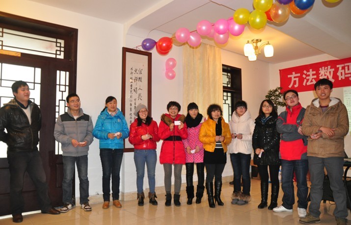 下午開展了全員大聯歡的聯歡會,方法數碼人用自己的方式表達了對新年的祝愿。公司各部門員工一展所長,表演了眾多豐富多彩、形式各樣的文娛表演。既有婉轉動聽的黃梅戲也有另類武術—雙截棍,還有三句半、新派評書等改良曲藝節目,贏得了臺下觀眾陣陣的掌聲與歡呼聲。其中商務2部表演的經典小品《超幸福鞋墊》更是一舉奪魁,獲得最佳表演獎;為了表彰員工一年的辛勤工作,公司頒發的獎項也是精彩紛呈,優秀團隊、優秀員工、優秀設計紛紛上臺亮相接受表彰;在享受公司精心準備的聯歡活動之余,還穿插了激動人心的抽獎環節。